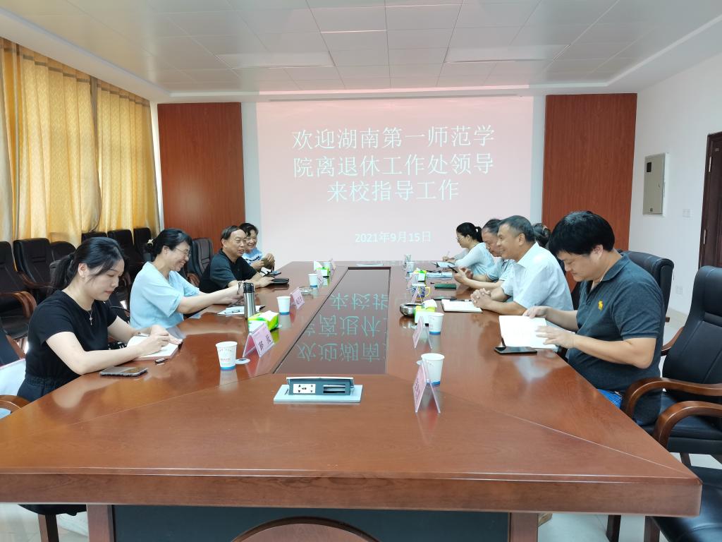 【本网讯】(通讯员 张艳霞)9月15日,湖南第一师范学院离退休处处长赵花云一行四人来校调研交流,我校离退休处全体人员热情接待,双方在第二办公楼四楼会议室召开座谈会。会议由离退休处处长罗延富主持。